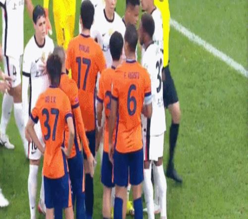 回看慢镜头之后,主裁判取消点球,并且向兰克尔泽出示黄牌,这让兰克尔泽非常不满,怒视裁判激烈抗议。