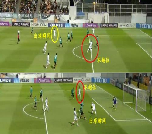 由于直播时没有给出更好的角度,只能以这图为判断。那么法比奥头球传球给林良铭时越位了吗?也应该不越位,注意看图片下方。从两人的站位来看,不像是越位。