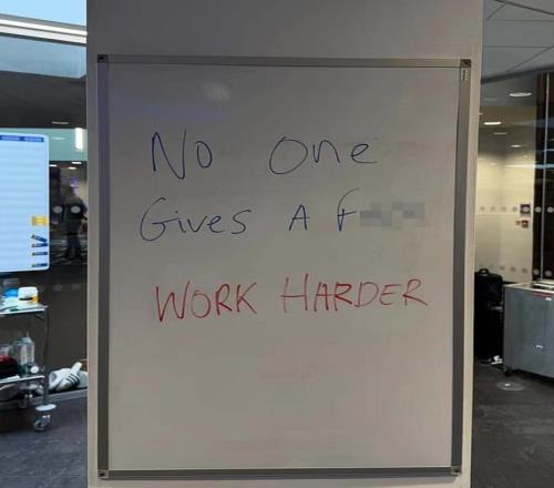 帕尔默表示:“也不管第五张照片上说什么了”,照片中展示了切尔西基地的一块白板,上面写着“没人在乎,再加把劲”。