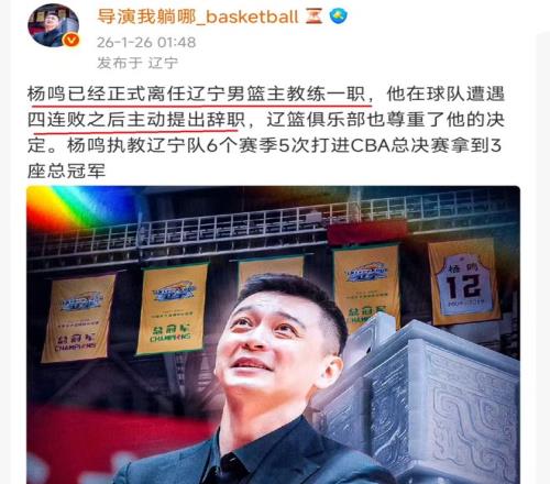 在赛后,随后大家也是看到了,有很多媒体人传出,杨鸣向辽宁队提出了辞职申请,要告别辽宁队执教生涯。