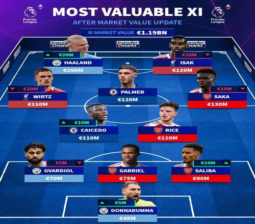 德转列英超最贵阵:哈兰德2亿欧领衔,枪手4人红军蓝军各2人 -