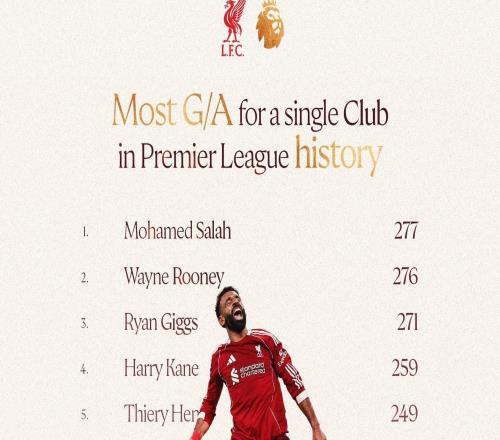 277球,萨拉赫成为英超历史代表单一俱乐部直接参与进球数第1 -